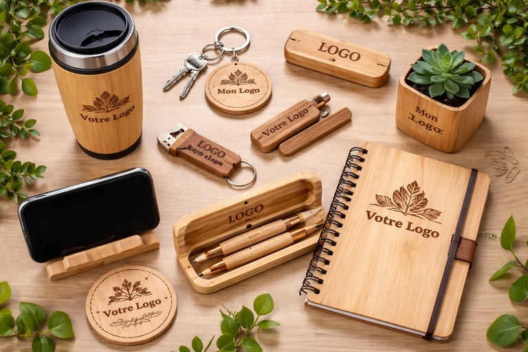 Nous réalisons des goodies en bois grâce à la gravure et découpe laser, pour des créations originales et personnalisées.